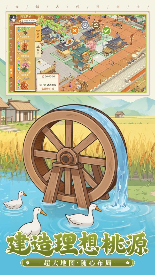 别的穿越剧主角一睁眼就是豪宅美婢、金银满屋,可你在从前有条街里醒来,眼前只有一片杂草比人高的荒地,几间摇摇欲坠的老屋,外加一群眼神期待但口袋比脸还干净的居民。系统甚至连新手礼包都抠抠搜搜,送你一把锄头就完事了。但别急着关游戏,这种“啥都没有”的开局,恰恰是最大的魅力所在。你可以亲手规划街道布局,决定先种菜还是先修路,是开个包子铺解决温饱,还是直接上手搞个造纸坊走技术流。每一块砖、每一棵树都是你一点点攒资源、一步步建起来的,那种“这是我打下的江山”的成就感,真的会上头。