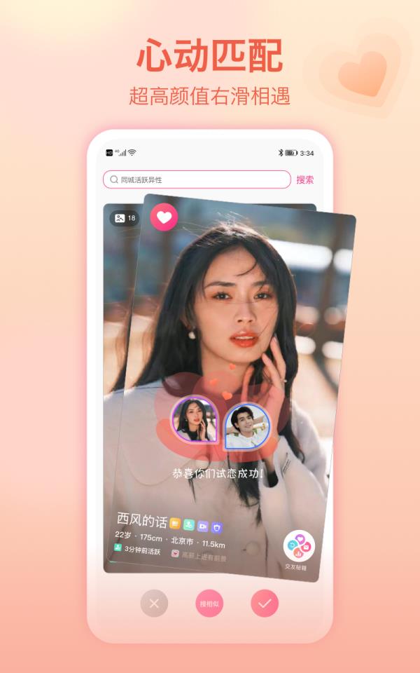 很多人一听婚恋APP就觉得复杂,其实世纪佳缘用起来特别顺手。打开首页就有“邂逅缘分”推荐页,系统会根据你的年龄、地域、择偶偏好自动推送合适的对象,不用你漫无目的地翻。如果你心里有明确标准,比如想找90后、本科以上、喜欢旅行的女生,直接用搜索功能一键筛选就行。还有“缘分速配”“心动瞬间”这些小功能,看照片、读简介、发个小心动,互动自然又不尴尬。最贴心的是,平台还配备了专业红娘团队,他们会根据你的情况主动推荐匹配人选,相当于有人帮你“牵红线”,省时省力还更靠谱。