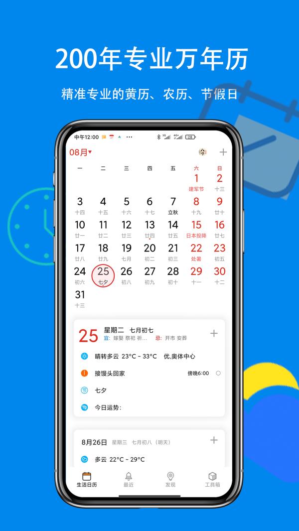 你是不是也经常忙到忘记爸妈生日?赶着上班却错过打卡时间?或者压根不知道明天是不是法定假日?别急,生活日历来了!这可不是你手机里那个冷冰冰的系统日历,它更聪明、更贴心,还能打电话叫你办事儿。没错,你没听错——它能打电话提醒你!从黄历宜忌到天气变化,从生日倒数到星座运势,生活日历就像你口袋里的生活管家,把琐碎的日子安排得明明白白。今天就带你好好认识这款“小而强”的神器。