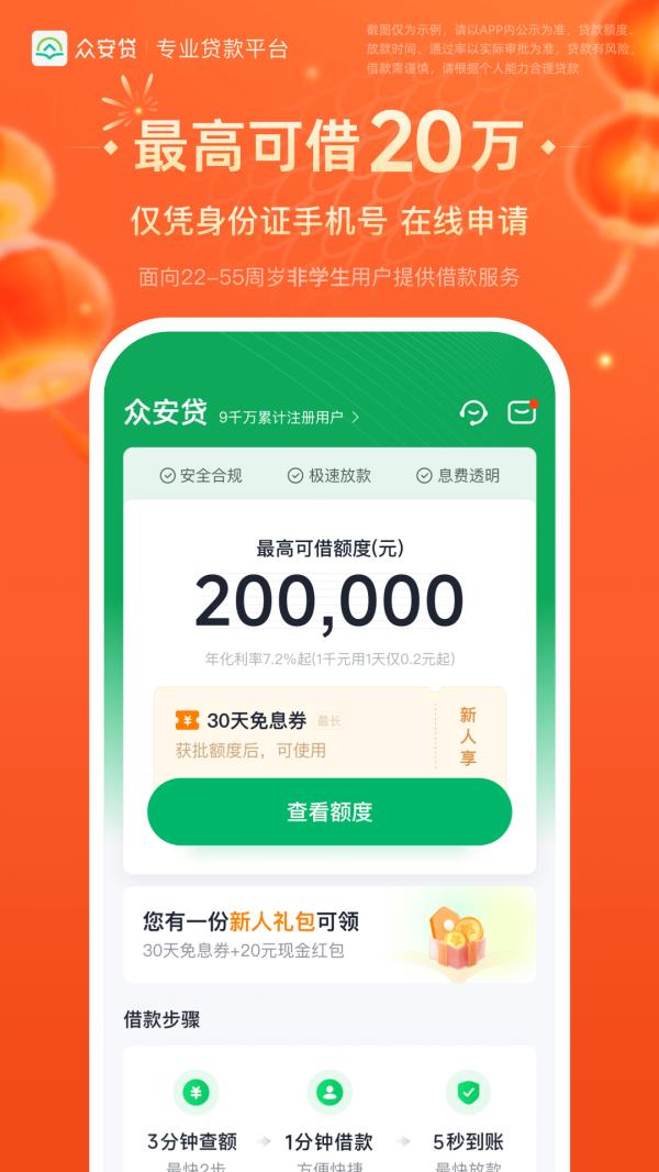 现在生活节奏快,谁还没个急用钱的时候?工资没发、生意周转、临时开销……这时候能快速借到一笔靠谱的钱,真的能解燃眉之急。今天要给大家推荐的这款APP——众安贷,就是专门为普通人和小老板量身打造的线上贷款神器。不用抵押、不用担保,动动手指3步申请,最高20万额度直接到账,最快5秒放款!关键是利息透明、还款灵活,真正做到了“救急不救穷”也能轻松应对。如果你正愁借钱难、审批慢、额度低,那这篇介绍你可得好好看看。