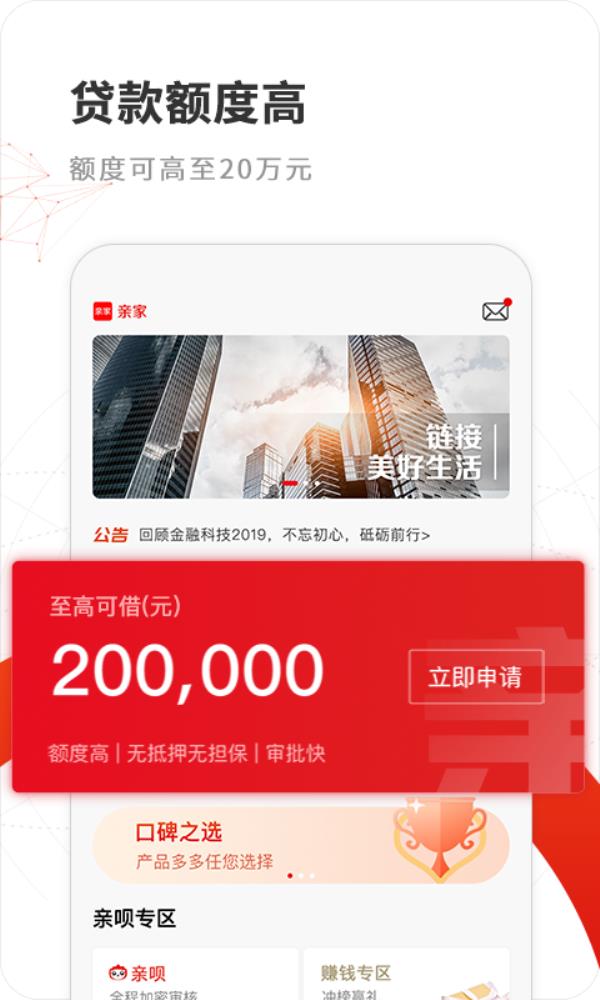 很多人一听到借钱,第一反应就是:“能借多少?”说实话,市面上不少APP看着宣传得挺热闹,结果一申请,几千块就顶天了,根本解不了渴。但亲呗不一样,它是亲家投资控股集团旗下的信贷服务品牌,背景靠谱,资金实力强。最吸引我的一点就是它的贷款额度,最高能达到20万元,具体能借多少当然要看个人资质,但至少给了我们更大的空间去应对大额支出。不管是装修、买车、还是临时周转,这个额度基本都能覆盖到。而且它不是那种“画大饼”的类型,很多人反馈真实审批下来也有几万甚至十几万,实用性很强。