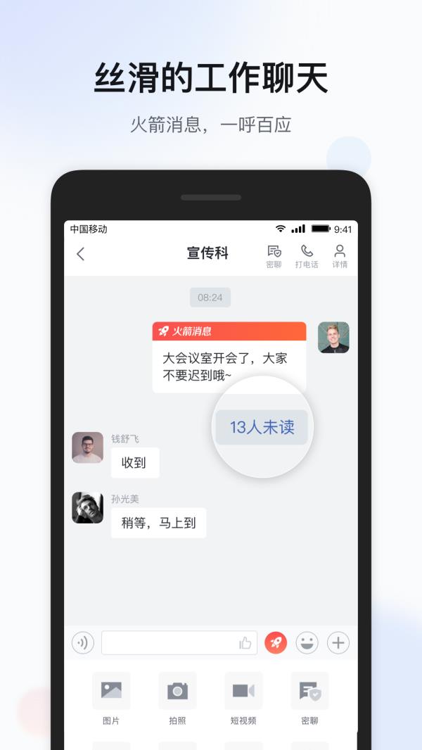 很多人一听到办公APP,第一反应就是“不就是个聊天软件吗?”但移动彩云可远远不止是发消息那么简单。它把IM功能做得特别接地气:支持单聊、群聊、已读未读状态显示,还能@同事、转发文件、语音通话,关键是所有消息都加密传输,企业级安全防护让你不用担心资料外泄。更重要的是,它不是孤立的聊天框,而是和其他功能打通的。比如你在群里讨论一个项目,可以直接把某条消息转成“待办事项”指派给某人,对方手机立刻收到提醒,做完还能反馈进度。这样一来,沟通不再只是“说过了”,而是真正“落地了”。