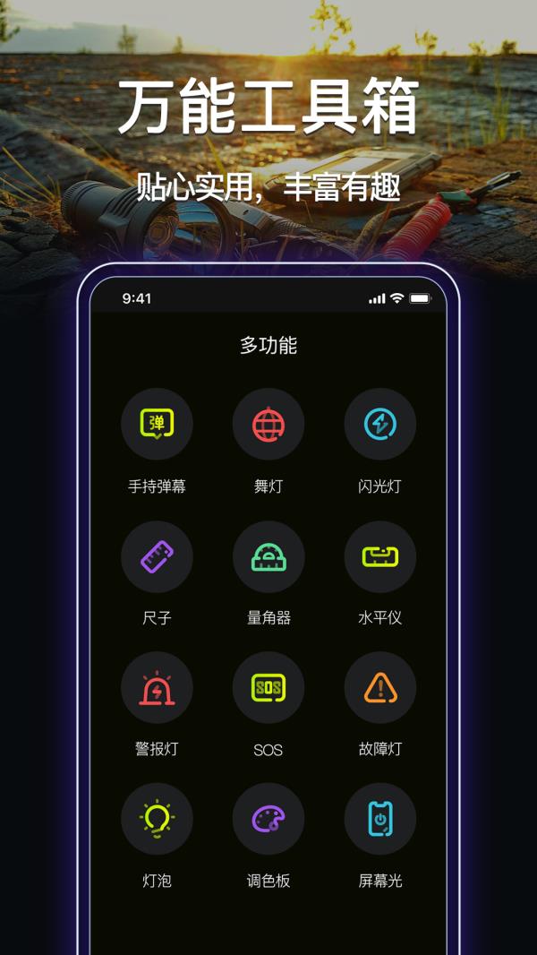 你有没有遇到过半夜回家楼道灯坏了,摸黑上楼差点摔跤?或者突然停电,翻箱倒柜找手电却怎么也找不到?别急,今天给大家安利一款真正能“救命”的神器——最强手电筒。这可不是普通的手电筒APP,它秒开、超亮、省电、不占内存,关键是完全无后台运行,用完就走,干净利落!不仅如此,它还集成了弹幕、尺子、水平仪、量角器等实用功能,简直是手机里的“瑞士军刀”。如果你还在用系统自带的简陋手电功能,那真的该换一换了。