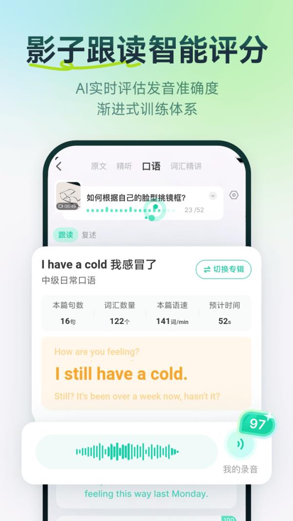 很多人听力还行,但一开口就露怯。扇贝听力口语早就想到了这点,它不只是让你听,更要让你说。每个句子听完后都可以立刻跟读,系统会实时评分,告诉你发音准不准、语调对不对。更狠的是“复述模式”,听完一句,你得用自己的话讲出来,锻炼的可是真正的语言输出能力。一开始可能磕磕巴巴,但练多了就会发现,脑子里不再是中文翻译英文,而是直接开始用英语组织语言了,这才是真正的突破。