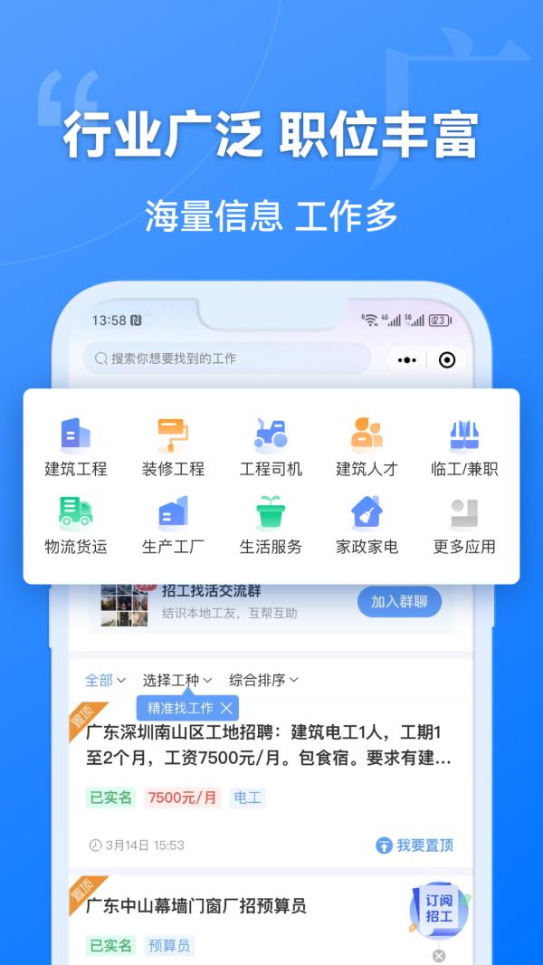 别看名字叫建筑港,好像只跟盖楼搭架子有关,其实它的路子可野了。从钢筋水泥的工地,到灯火通明的餐厅后厨;从轰隆作响的制造车间,到大街小巷的快递配送,只要你愿意干活,这里就有适合你的岗位。装修师傅可以接单干私活,叉车司机能找到稳定厂聘,服务员、保洁、保姆也能在这儿找到靠谱雇主。关键是所有信息都经过平台审核,不像某些地方满屏都是“高薪日结”的坑人广告。建筑港把行业分类做得特别细,点开就能按地区、薪资、工种一键筛选,省得你一个个翻、一家家问,效率直接拉满。
