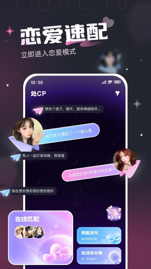 很多人一想到交友软件,脑海里浮现的就是“你好,在吗”这种冷冰冰的开场白。但处CP不一样,它的核心玩法是“自动分配优质对象”,系统会根据你的兴趣标签、语音偏好、在线时间等数据,智能推荐适合做CP的人选。你可以先看看对方的声音片段或者资料卡,觉得眼缘对了再发起互动。这样一来,省去了大海捞针式的翻资料过程,也避免了一上来就硬聊的尴尬。更贴心的是,平台还会定期推出主题速配活动,比如“深夜电台组队”、“王者荣耀双排专场”,让有共同爱好的人更容易碰出火花。