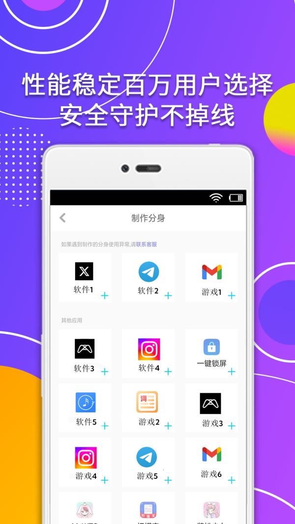 你是不是也经常遇到这种情况:工作用一个微信,生活用一个微信,还得再留个微信号专门处理客户?游戏想多开刷资源,结果一登录就被封号?手机里账号太多,来回切换麻烦得要死?别急,今天给你安利一款真正能“一机变多机”的神器——分身助手。它不光能让主流应用一键多开,还能保证每个小号独立运行、互不干扰,关键是稳定防封,体验跟原生应用一模一样!一句话总结:分身助手,就是让你用一部手机,活出好几倍的效率和自由。