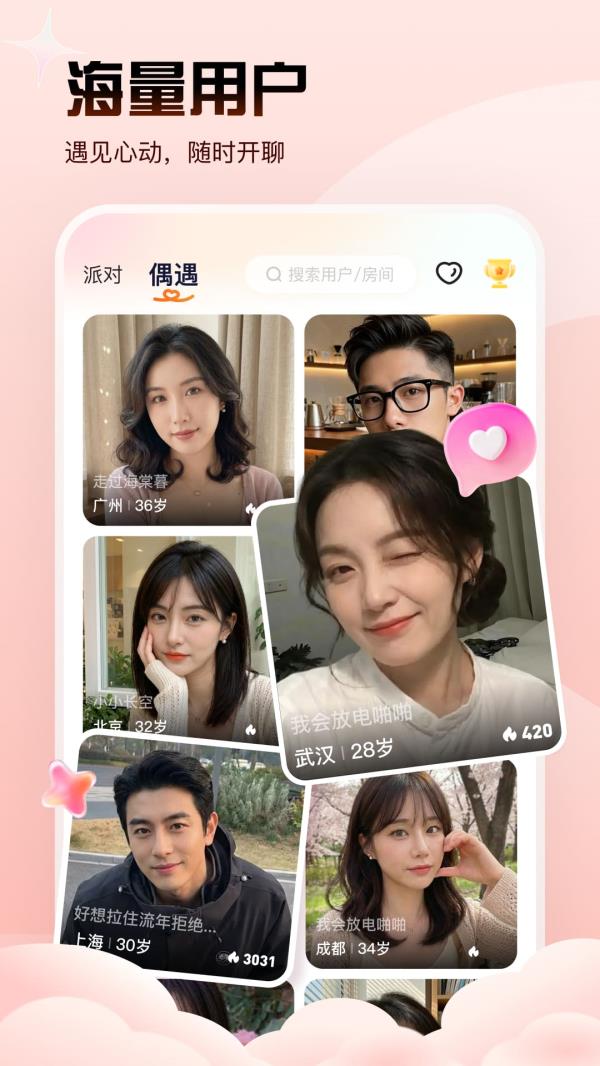 2. 专业破冰主持人帮忙。让遇见变得简单自然不尴尬。气氛搞起来交友更轻松自在。用户能轻松扩列认识新朋友。随时随地加入狂欢派对体验。